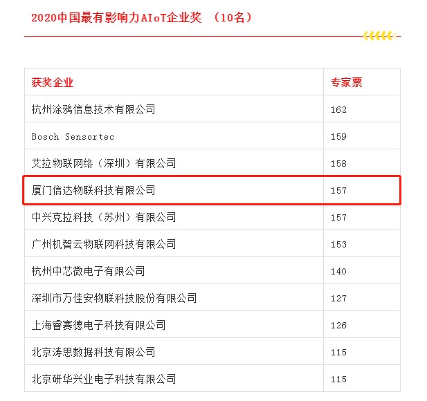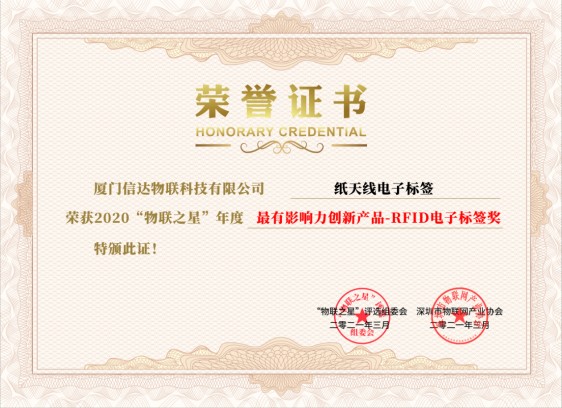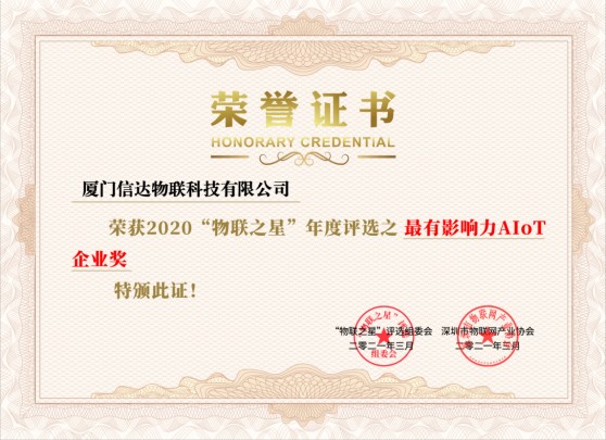 信达物联历经大众投票预热、专家评委投票等环节,摘夺“2020中国最具有影响力AIOT企业奖”和“2020年中国物联网(RFID)行业最具有影响力创新产品奖”两项桂冠。