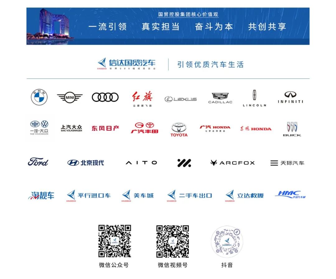 汽车板块是国贸控股集团重要核心业务之一。近年来,信达国贸汽车直面挑战抢抓机遇,不断扩展新业务、新领域。品牌经销申请屡获突破,北京红旗、深圳红旗、泉州红旗、泉州林肯、福州赛力斯、厦门极狐、厦门智己、武汉智己一店、武汉智己二店等陆续获批;新能源品牌发展壮大,二手车业务增长迅猛,数字化营销模式创新发力,逐步实现销售服务、售后服务的数字化、网络化。信达国贸汽车将坚持以创新性形式服务广大客户,践行国企担当,履行社会责任。