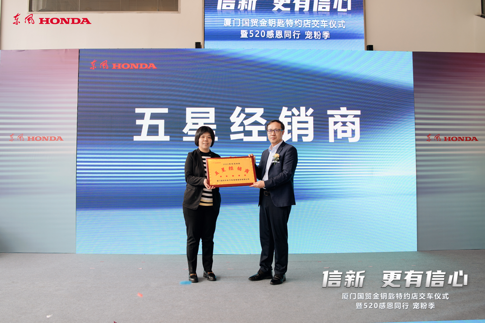 近日,2022年度东风本田“金钥匙特约店”颁奖仪式在东风本田厦门国贸店举行。信达国贸汽车旗下东风本田厦门国贸店从全国600余家特约店中脱颖而出,揽获东风本田厂家“金钥匙特约店”及“五星经销商”两项荣誉,并获得厂家奖励的价值24.99万元尊耀版CR-V一台。